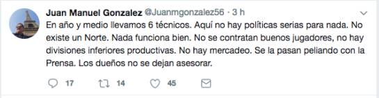Otro de los destacados periodistas de Bucaramanga, Juan Manuel González se preguntó qué falla en la institución como para que hayan ocurrido tantos cambios, sin resultados satisfactorios para la hinchada.