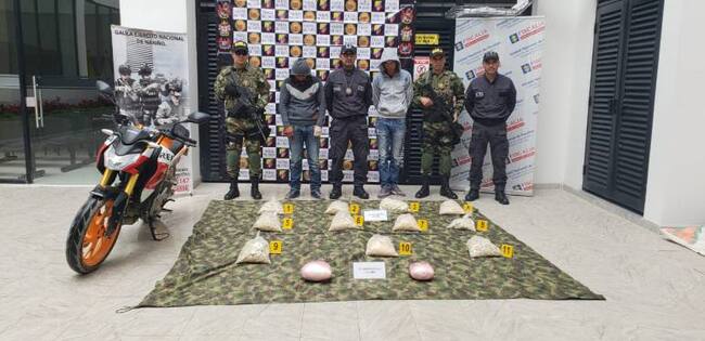 La ofensiva militar con el acompañamiento de la Fiscalía se llevó a cabo en la vereda La Motilona, jurisdicción del municipio de Samaniego en Nariño en donde los uniformados mediante labores de inteligencia lograron la captura de dos sujetos que además tenían en su poder 21,8 kilos de pasta base de coca y 4,15 kilos de clorhidrato de cocaína.