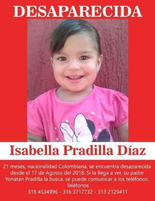 Isabela Pradilla Díaz, de 21 meses, desapareció el pasado viernes 17 de agosto en Bogotá. Yonathan Pradilla, padre de la menor, asegura que tampoco tienen razón de la madre de la niña, de nacionalidad venezolana.