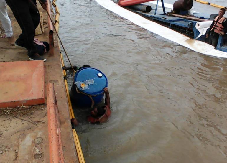 "Ya se extrajo el Acpm, el aceite hidráulico y el combustible que estaba encima de la cubierta, por lo que ya quedó superado el riesgo ambiental que esto representaba para Barranquilla", indicó el Capitán del Puerto.