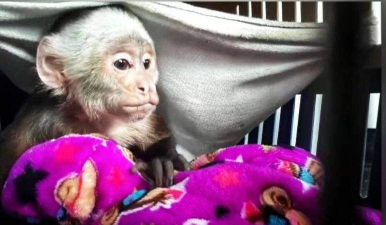 Según las autoridades, el mono fue traído ilegalmente a Bogotá desde el municipio de Cimitarra, Santander, cuando tenía dos meses y era cuidado con frutas, huevo cocido y leche a través de un biberón, dicen, “alterando su metabolismo y su dieta natural”.
