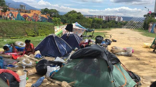Desde la Sierra del Perijá del estado Zulia en Venezuela migraron 13 familias indigenas Yupa hacía Bucaramanga en busca de mejores condiciones. Desde hace cuatro meses están en la ciudad y los últimos 15 días han vivido en el obelisco del Puente La Novena.