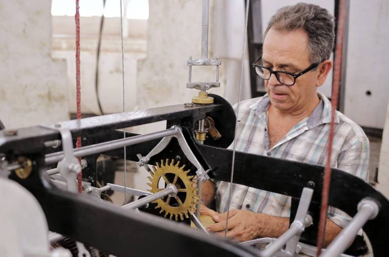 Su corazón, la máquina que con todo su engranaje marca la hora de este monumento, ya está prácticamente lista. Sus piezas son sometidas a ajustes mínimos para que funcionen sincronizadas. Los trabajos los adelanta la Fundación Grupo Conservar y el relojero, Olivier Wuilleumier, un cartagenero de raíces suizas, quien es el encargado de hacer los últimos retoques de cada una de las partes para que funcione sin contratiempo.