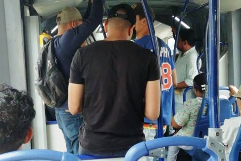 Un joven de nacionalidad venezolana fue sorprendido pidiendo dádivas en un bus, por los que los inspectores y vigilantes de seguridad de Transcaribe procedieron a desalojarlo, ya que infringió normas de comportamiento en el sistema.