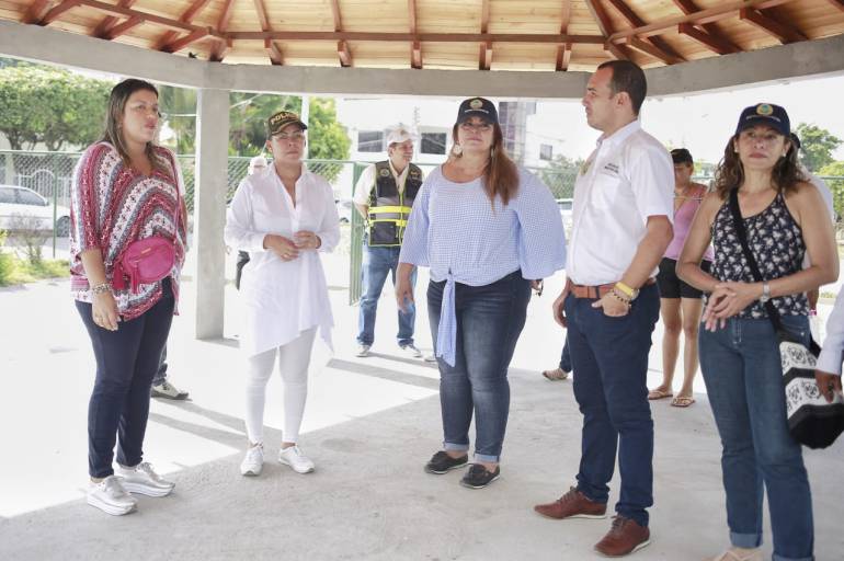 La Alcaldesa (e), Yolanda Wong, en compañía de la Secretaría de Infraestructura Distrital, Clara Calderón, visitaron primeramente las obras de Santa María, donde de realiza el mantenimiento de la cancha multifuncional y a los juegos infantiles, los cuales se encuentran con un avance del 35% y su inversión aproximada es de 45 millones 800 mil pesos.