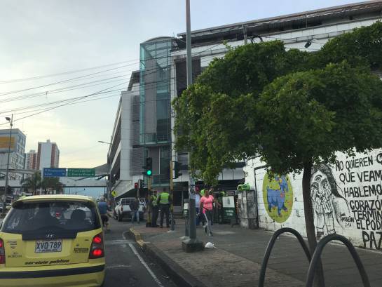 Hay cierres de la carrera 15, a la altura de este centro comercial de Bucaramanga.