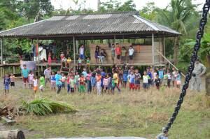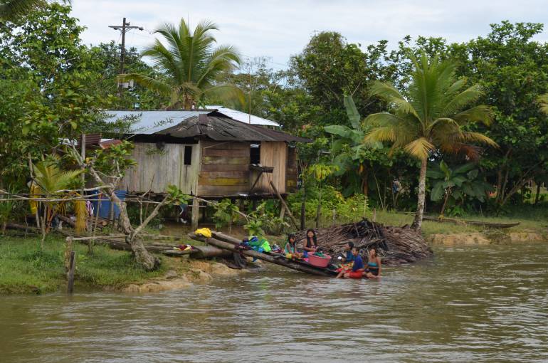 Esta población, a la que llegamos navegando en el ARC Bahía Málaga de la Armada Nacional, hace parte de las 52 comunidades indígenas y afro descendientes, asentadas a lo largo del río San Juan en límites del Valle y Chocó.