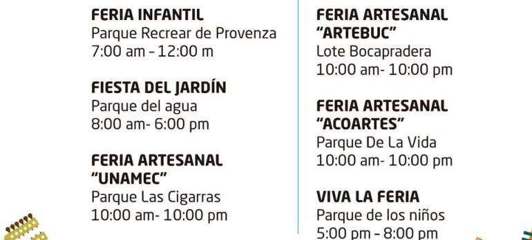 Otra de las actividades es viva la feria donde habrá más entretenimiento y cultura para toda la ciudadanía. Esto en el parque de los Niños desde las 5:00 p. m hasta las 8:00 p. m.