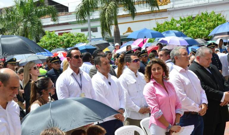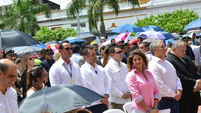Entretanto el Alcalde de Buga Julián Latorre expresó su complacencia por la vista del jefe[ de Estado y la de su familia a quienes les entregó una imagen del Señor de los Milagros bendecida por el padre Laureano, rector de la Basílica de Buga