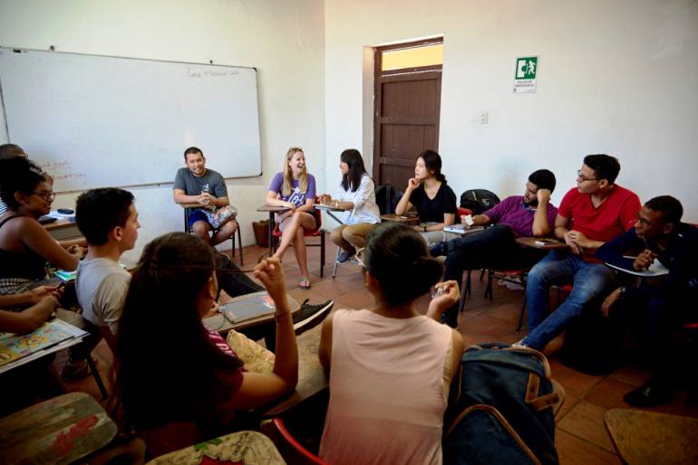 Los jóvenes, que en sus países de origen son universitarios y guías turísticos, de igual manera, enseñarán inglés a los niños de la Clínica de lo Social, programa bandera de responsabilidad social del Colegio Mayor de Bolívar.