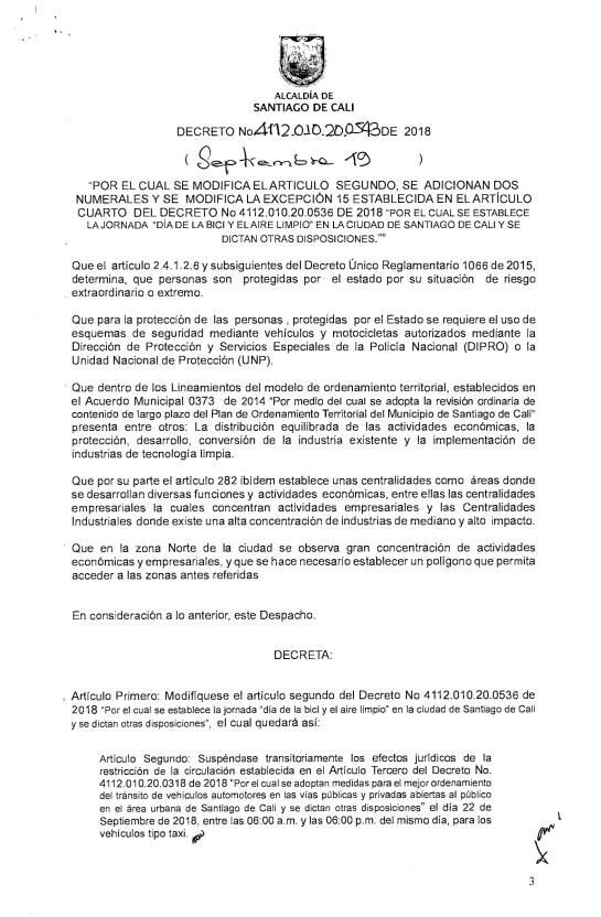"Básicamente se corrigió un error con los taxis con el tema de pico y placa para ellos y ahora se levanta la medida, es decir se levanta la medida” aseguró el secretario de movilidad de Cali, Juan Carlos Orobio.