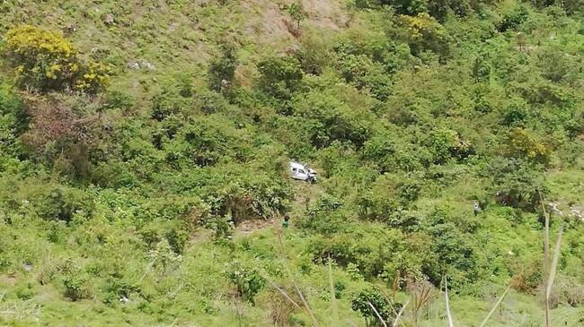 Una camioneta llena de campesinos que iban a una reunión de rendición de cuentas se fue a un abismo, cuando el conductor trato de evadir un motociclista que invadió el carril contrario.
