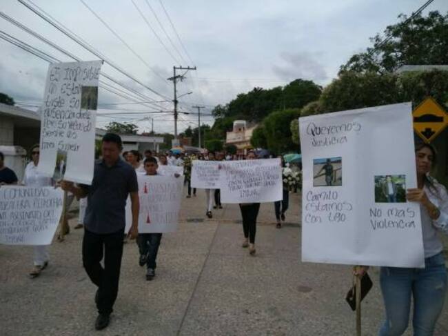 A las exequias asistieron cientos de habitantes portando pancartas de apoyo a la familia Tirado y de rechazo a la violencia.
