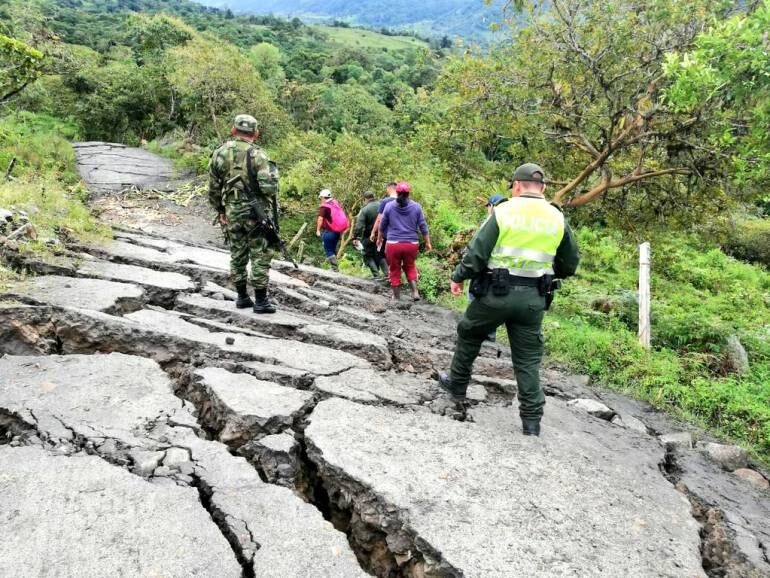 La alcaldesa María Eliza Montañez, sostuvo que “además tenemos agrietamientos graves en la vía, la suspensión de los servicios públicos domiciliarios, y la necesidad del cierre de la vía que se encuentra en condiciones intransitables para vehículos y peatones. Los movimientos de tierra no han cesado, y por eso no ha sido posible verificar las causas que generaron esta emergencia, las cuales pueden ser multitudinarias. Esta emergencia sigue siendo crítica porque las lluvias siguen siendo intensas y agudizan el deslizamiento; el volumen de masa que viene hacia la parte baja es bastante grande, y por eso mantendremos la alerta máxima”.