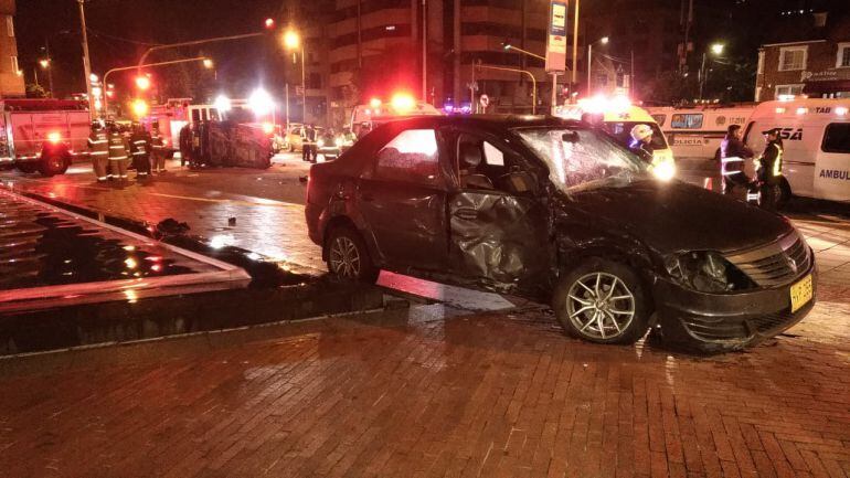 En las horas de la madrugada de este sábado, una camioneta pasó el semáforo en rojo en la carrera séptima en el norte de Bogotá, y chocó con un vehículo Logan que bajaba por la calle 67.