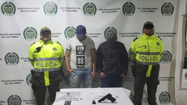 Los capturados, dos hombres de 25 y 31 años de edad, quienes registran anotaciones por los delitos de hurto calificado y agravado, se les halló en su poder un arma de fuego tipo pistola, se logró la recuperación del vehículo y el celular.