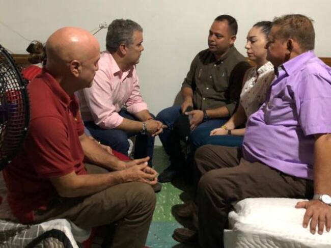 Duque Márquez llegó acompañado con un fuerte esquema de seguridad y una comitiva de su gabinete para avanzar en las investigaciones de esta retención del menor, al no conocerse aun que grupo armado lo mantendría en su poder durante estos días.