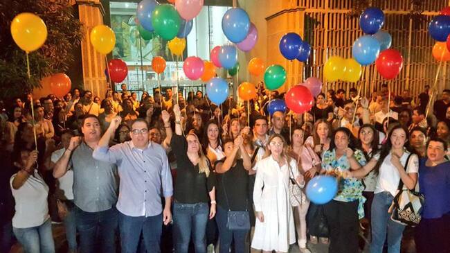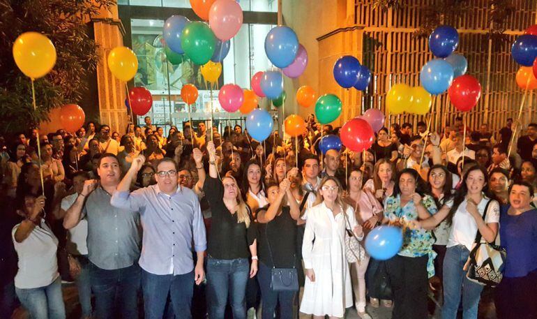 Los funcionarios de la Alcaldía realizaron un plantón en la noche de este lunes en puerta de la administración distrital