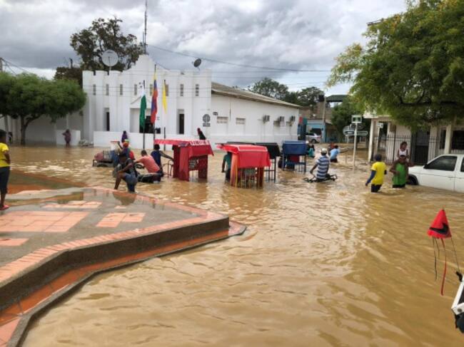 Desde la plaza principal de Uribia, La Guajira, denominada Plaza Colombia, hasta los barrios Eduardo Abuchaybe, Las Mercedes, El Campito, entre otros, se vieron afectados con la inundación provocada por el desbordamiento de dos arroyos que atraviesan esta población. Actualmente, el 45 % del municipio se encuentra sin servicio de energía.