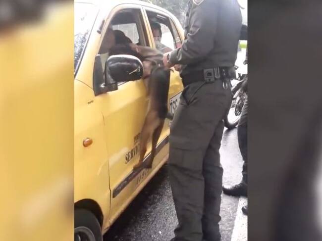 La denuncia de quienes filmaron otro caso de abandono en Medellín, se evidenció cuando desde el sector de Robledo –Aures, se ve al perro perseguir un taxi donde iban sus amos, en el sector de la carrera 80 son detenidos por la Policía, por la denuncia ciudadano.