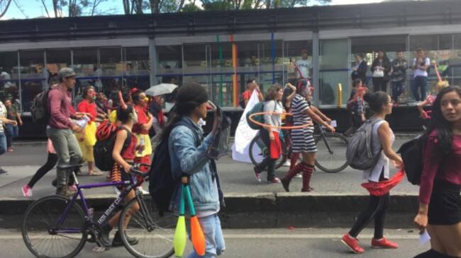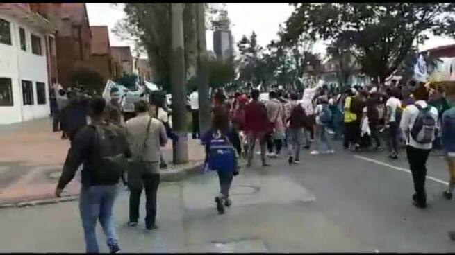 Las marchas de estudiantes y docentes por la educación pública que se adelantan este miércoles en Bogotá tienen colapsada la movilidad en varios puntos.