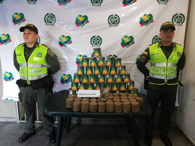 La droga que tenía como destino Tumaco, iba camuflada en 40 latas que simulaban tener durazno; al momento de la revisión la Policía se encontró con 25 kilos de marihuana.