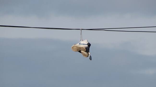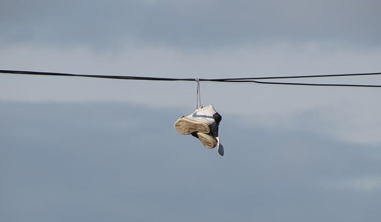 Cambian tenis colgados en cables de la luz por nuevos en Bogotá