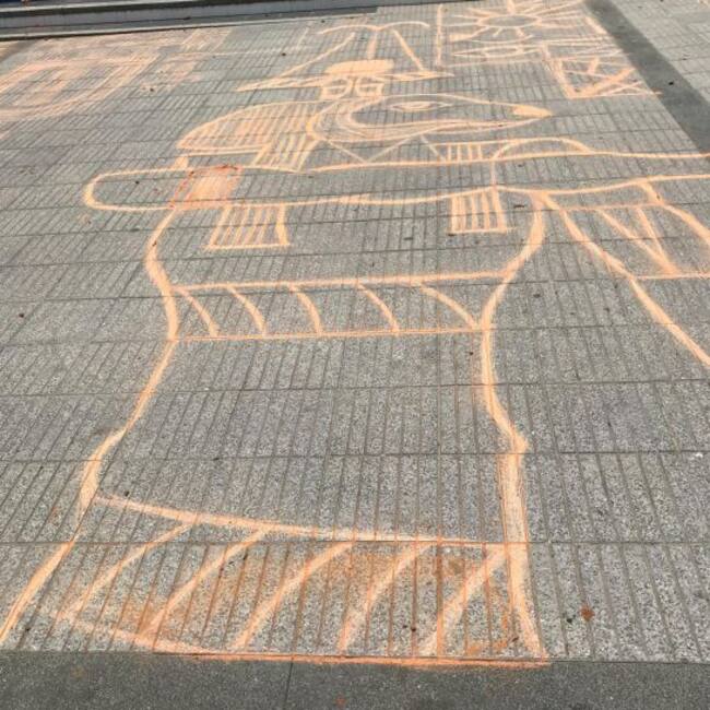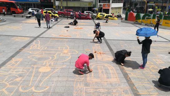 Los primeros en protestar de manera simbólica fueron los estudiantes de artes visuales quienes con ladrillos dibujaron en el piso del parque Murillo, ubicado al frente de la Gobernación, faraones y otras imágenes que representaban la cultura antigua de Egipto, Siria, Grecia y otras zonas del mundo.