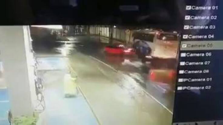 Caracol Radio obtuvo el video en el cual se observa cómo chocan un automóvil particular y un bus de Copetran a la altura de una estación de servicio llamada La Socorrana entre Socorro y Oiba.