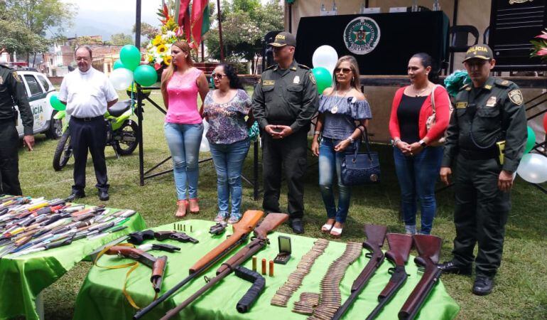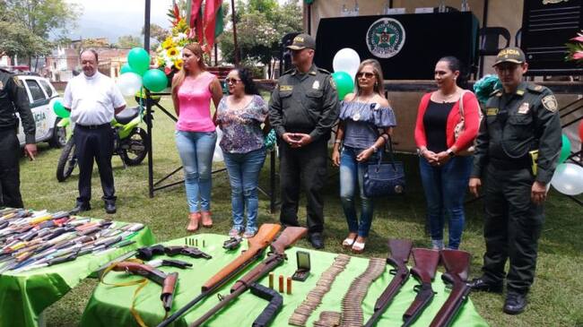 En total fueron entregadas 253 armas blancas, 9 armas de fuego y 148 cartuchos de diferentes calibres que quedaron a disposición de las autoridades.