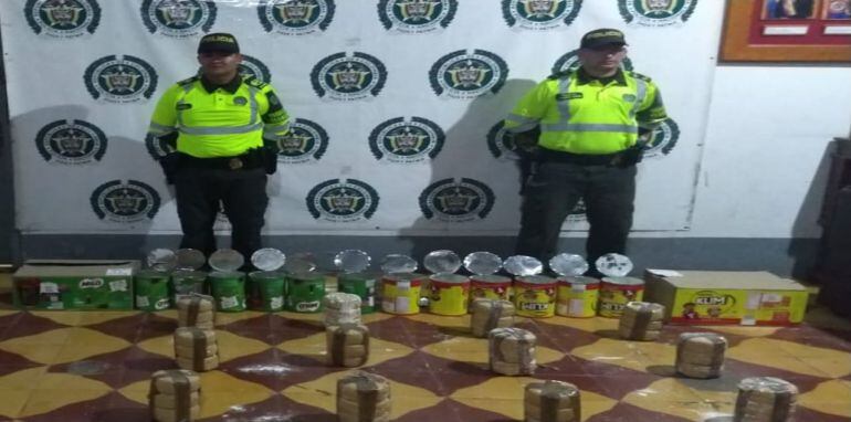 En un camión de encomiendas que transitaba por el sector La Botija, sobre la vía Manizales Medellín, las autoridades encontraron 50 kilos de marihuana que iban encaletados dentro de 12 tarros de lata de una reconocida marca de leche en polvo.