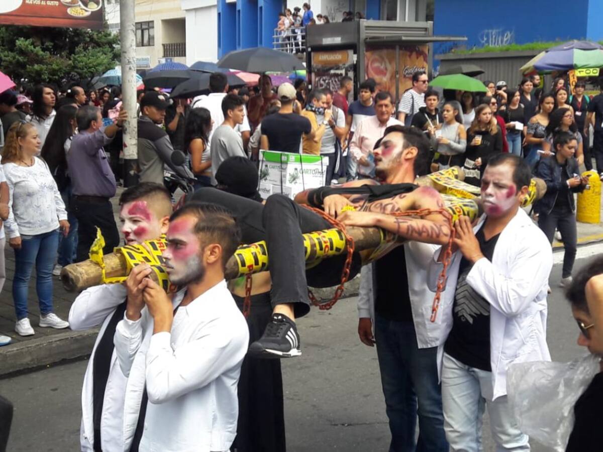 Con representaciones teatrales los estudiantes marcharon en la capital del Quindío