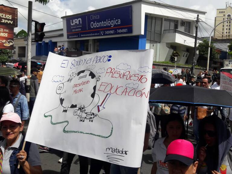 Docentes y estudiantes marcharon por las calles de Armenia