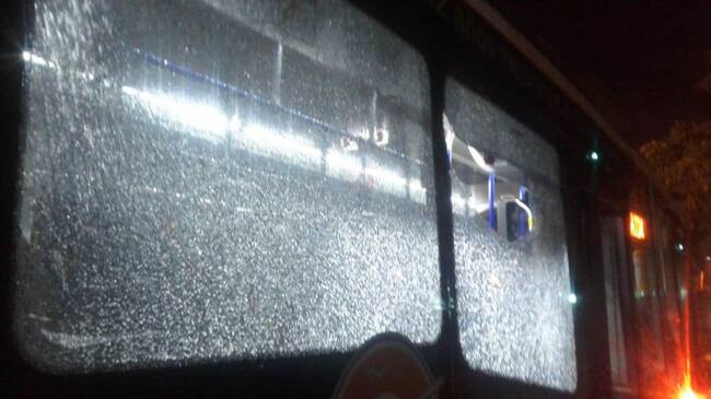 Según el reporte de Transcaribe, el primer ataque ocurrió a las 7.20 de la noche del miércoles, en el sector de Nelson Mandela. Desconocidos lanzaron una piedra que provocó la ruptura de dos ventanas de vidrios de un bus que cubre esta ruta. En este caso no hubo lesionados entre los pasajeros.