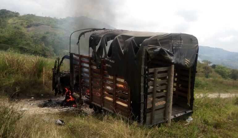 Indígenas en el Cauca quemaron un camión que movilizaba policías