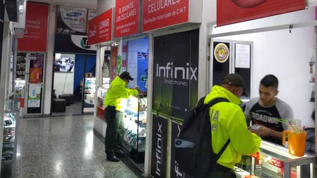 Miembros de la Sijin de la Policía Metropolitana desarrollaron operativos de allanamiento en varios establecimientos en un centro comercial en la zona centro de Ibagué, donde pudieron establecer que se tenían para la venta algunos equipos de telefonía celular que fueron reportados como hurtados.