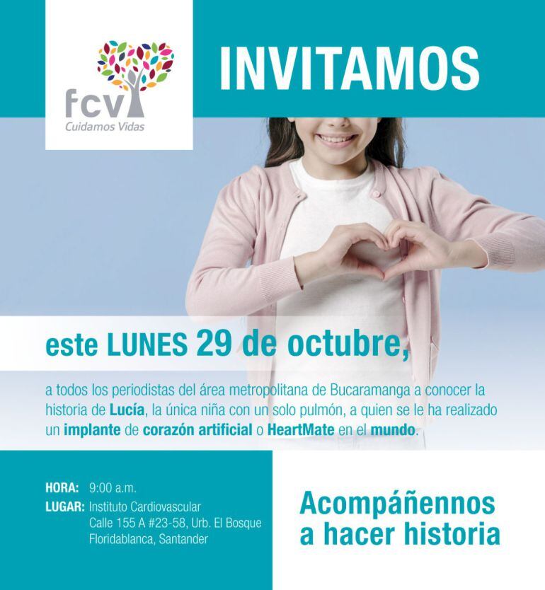 La Fundación Cardiovascular de Colombia logró implantar un corazón mecánico a Lucía, una niña de 13 años, quien además vive con un sólo pulmón. El hecho es considerado un caso único a nivel mundial. La cirugía para implantar el dispositivo llamado HeartMate ocurrió hace 9 semanas. La pequeña sobrevivió y está bien.