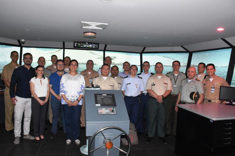 Durante la visita el grupo integrado por miembros de las diferentes Fuerzas Militares del país, conocieron la oferta académica de la universidad marítima de Colombia e ingresaron a los simuladores y laboratorios de Ingeniería que se encuentran en el Centro de Investigación, Desarrollo e Innovación para Actividades Marítimas CIDIAM de la Escuela Naval.