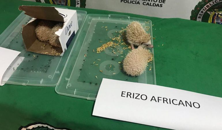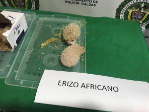 Se trata de 4 erizos africanos, que el hombre de 35 años llevaba a bordo de un vehículo cuando hacia tránsito por la vía Manizales – Pereira, a la altura del sector del Pollo, jurisdicción del municipio de Chinchiná.