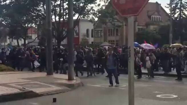 Al mismo tiempo, la Universidad Nacional se unió a la manifestación sobre la avenida NQS y mantiene bloqueados los carriles en ambos sentidos. Se presenta congestión vehicular.