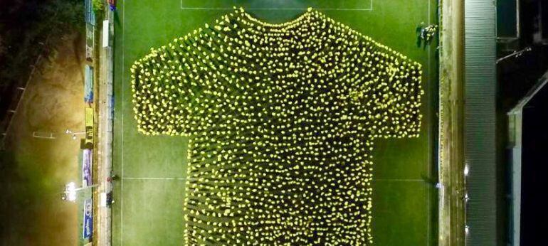 Se trataba de armar la figura de la camiseta más grande del mundo.