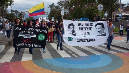 Centenares de estudiantes se movilizaron por las principales calles de la capital caldense para protestar por las dificultades económicas que atraviesa la educación pública superior en Colombia.