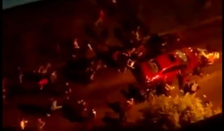 Un conductor atropelló a un grupo de personas que atacaban su carro.