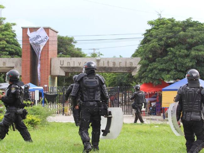 Encapuchados se enfrentan con el Esmad afuera de la Uniatlántico
