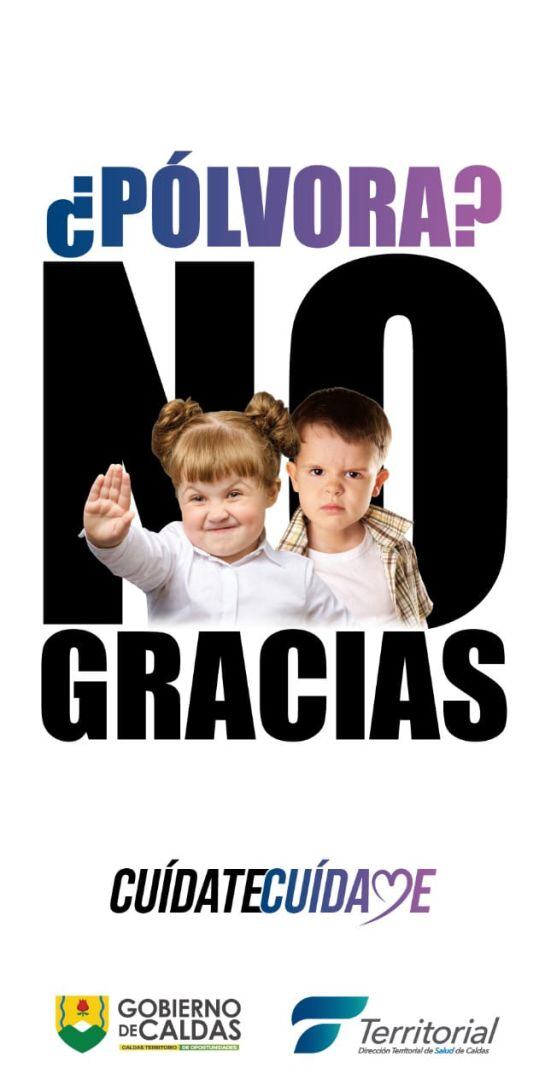 Con el numeral #CaldasBrillaSinPólvora, la Gobernación de Caldas quiere apropiar a propios y visitantes del cuidado y del no uso de pólvora en las comunidades, además de que en la época de diciembre no existan registros de personas quemadas, ¿Polvora? NO GRACIAS, es la iniciativa de todos los entes de salud y de control en el departamento.