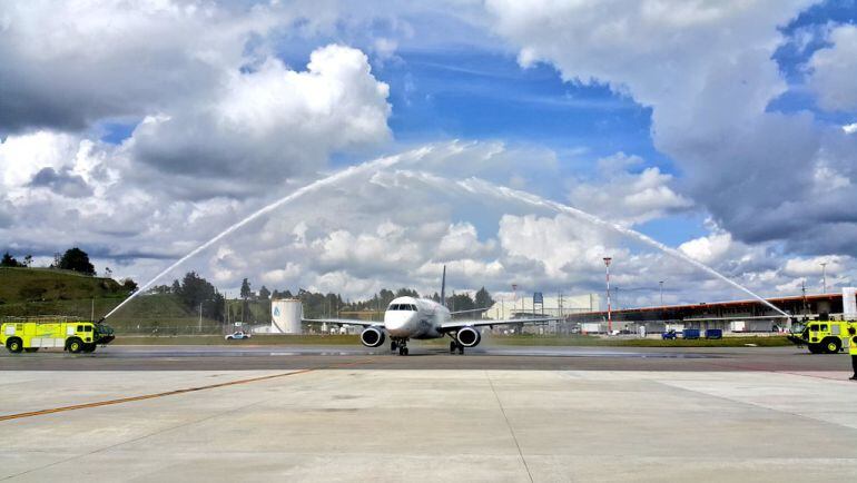 En la tarde de este sábado llegó a Medellín un Embrae 190 de la aerolínea Aeroméxico, para inaugurar la ruta Cancún - Medellín - Cancún, en esta aeronave que tiene una capacidad para 100 pasajeros y que tendrá dos frecuencias, los días sábados y domingo, saliendo desde México a las 10:25, para llegar al Aeropuerto José María Córdova la 1:35 y saliendo desde Rionegro a las 2:37 y llegando a las 5:52 de la tarde.