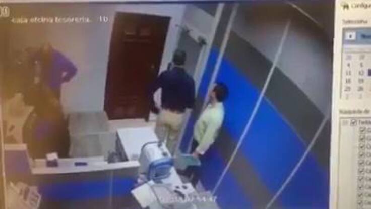 En las imágenes se ve a Rafael Ovalle, presidente de la organización obrera entrando a una sala; toma un objeto y lo arroja con fuerza contra el piso. En el video quedó registrado cómo sacan a los trabajadores de la cooperativa que empezaba labores en las cajas de recaudo.