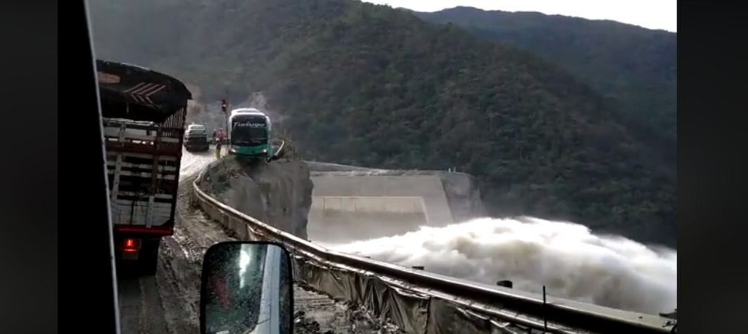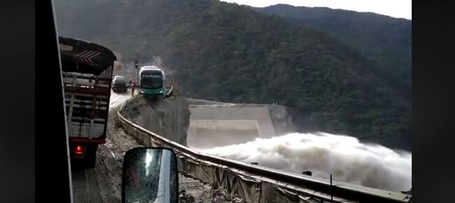 En un video que circula por las redes sociales, se observa como un bus en el proyecto Hidroituango, por poco cae al vertedero, que fue habilitado recientemente por parte del Grupo EPM.