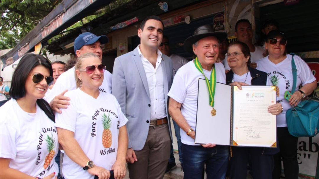 Don Gustavo y su esposa Mariela han compartido 64 años de vida matrimonial. La alcaldía entregó al pionero de la venta de piña, la máxima distinción del municipio, la orden José Elías Puyana.