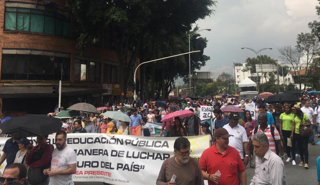 Multitudinaria marcha en Medellín de estudiantes, docentes y trabajadores
